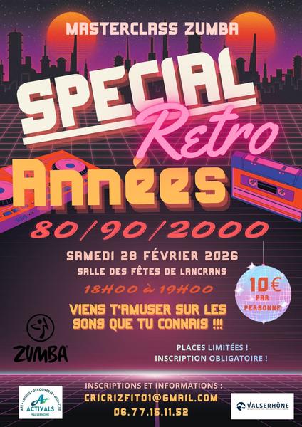 Séance de zumba (fitness dansé) d'une heure sur le thème des années 80 à 2000.