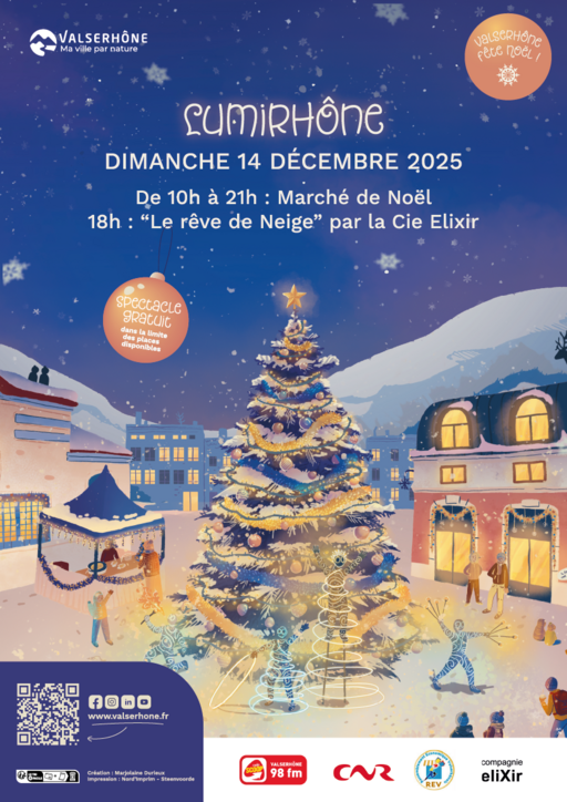 Elle adresse également sa gratitude aux commerçants et artisans du REV (Rassemblement Économique Valserhônois) à l’initiative du Marché de Noël ainsi qu’aux prestataires Cie Elixir et Cie les Lézards Bleus pour la qualité de leurs spectacles.