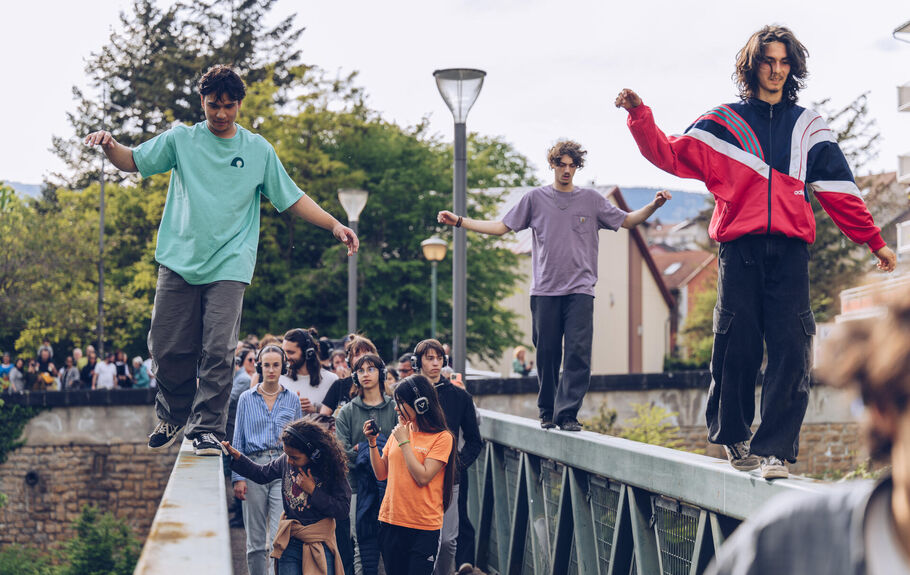 Tout d’abord, une balade sonore chorégraphique à travers la ville, offrant l’occasion de découvrir les trésors cachés de Valserhône. Cette balade totalement inédite fut ponctuée de petits spectacles chorégraphiques pour mettre en valeur les sites urbanistiques.