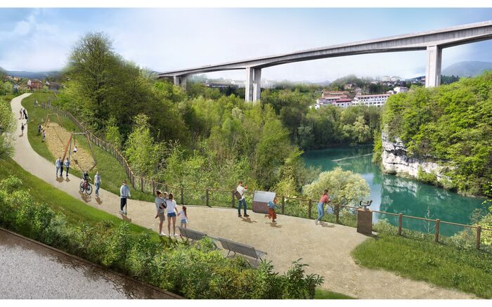 Ces nouveaux aménagements favorisent la promenade, la biodiversité, et les mobilités douces. Ils viennent compléter ceux réalisés de 2011 à 2015 côté centre-ville, créant une continuité piétonne et cyclable de type voie verte reliant le centre-ville, depuis la place des frères Zanarelli, jusqu’à la base d’aviron d’Arlod, sur une distance totale d’environ 3 kilomètres, incluant les 750 mètres déjà aménagés. Les ambiances et les aménagements seront adaptés en fonction des différents secteurs traversés.