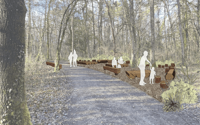 Est également prévue la création d’une aire de jeux pour les enfants de 3 à 8 ans à l’entrée Sud du Bois, à proximité de l’EHPAD Croix-Rouge, dans une volonté de favoriser les échanges intergénérationnels.